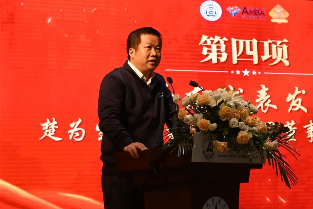 9月21日下午,中南财经政法大学工商管理学院举办2023级新生开学典礼。楚为生物科技有限公司董事长郑伟作为特邀嘉宾出席开学典礼并向全体新生作《人生有梦,努力追逐》的发言。