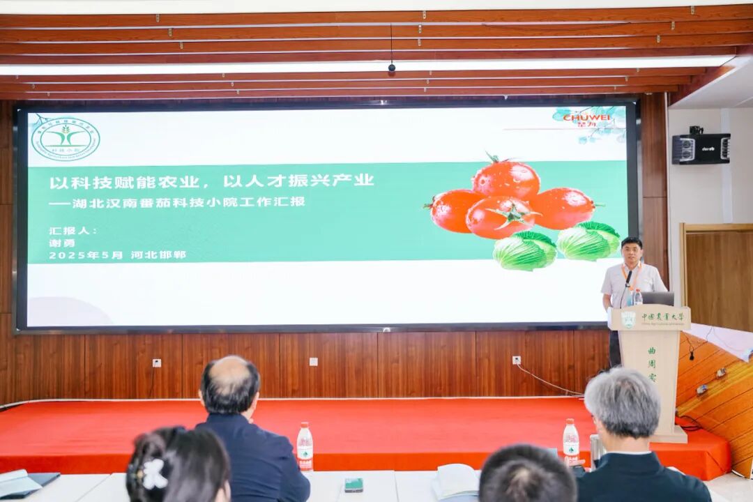 在深入学习贯彻习近平总书记给中国农业大学科技小院学生的重要回信精神两周年之际,5月8日,2025年全国科技小院大会在河北邯郸召开,围绕“推进教育科技人才一体发展”主题,共谋、共商、共促科技小院高质量发展。会议由全国农业专业学位研究生教育指导委员会和中国农业大学主办。来自全国31个省份、106所高校和的近300名专家、学生及企业代表、农户代表参加大会。楚为生物科技有限公司(简称“楚为生物”)作为唯一一家科技小院依托方的企业代表参加大会,楚为生物联席总经理谢勇参加会议并作专题报告。